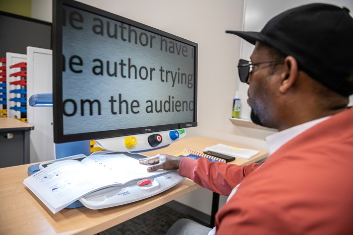 Many learners with low vision or blindness benefit from classroom and test accommodations. Modified testing conditions include extended test times, breaks, preferential seating, flexible test dates, and small group or private testing. To accommodate B/Vi learners in the classroom, our educators provide explicit and systematic instruction with real-life examples, description of all images and verbalizing information as it is written or projected on the board. We also utilize volunteers to provide extra support by serving as readers, scribes, audio recorders, and one-on-one tutors in or outside of the classroom.