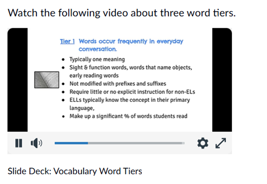 This self-paced course is packed with visuals, videos, and links to key research, instructional materials, teaching examples, and assessment materials. Many modules have options for assignments to fit the needs and contexts of participants. The course includes feedback and guidance from the ATLAS Language & Literacy Coordinator.