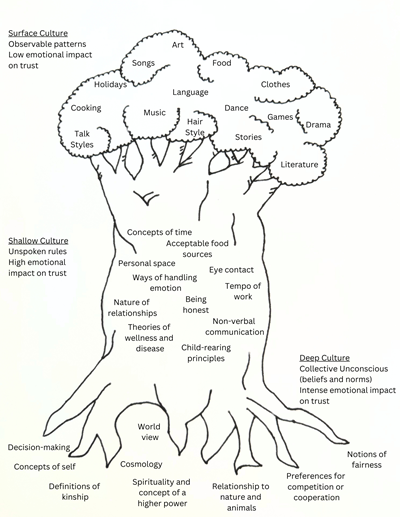 Like Video 5, this video looks at the tool called the Culture Tree, but can be viewed on its own as a stand-alone lesson. When you ask “what is culture?”, the answer can seem pretty vague and hard to name. The Culture Tree helps us name tangible parts of culture, so that when we look at our lesson plans, we can figure out how much of the content is based on our own culture and ways of seeing/ thinking of things. Therefore, once we name what part of culture the lesson connects with, we can then think about what kinds of discussion questions or content will invite learners to share about their own experiences. This makes class more relevant and helps learners bridge information they already know to new skills and knowledge.